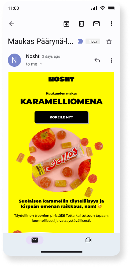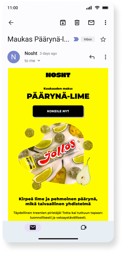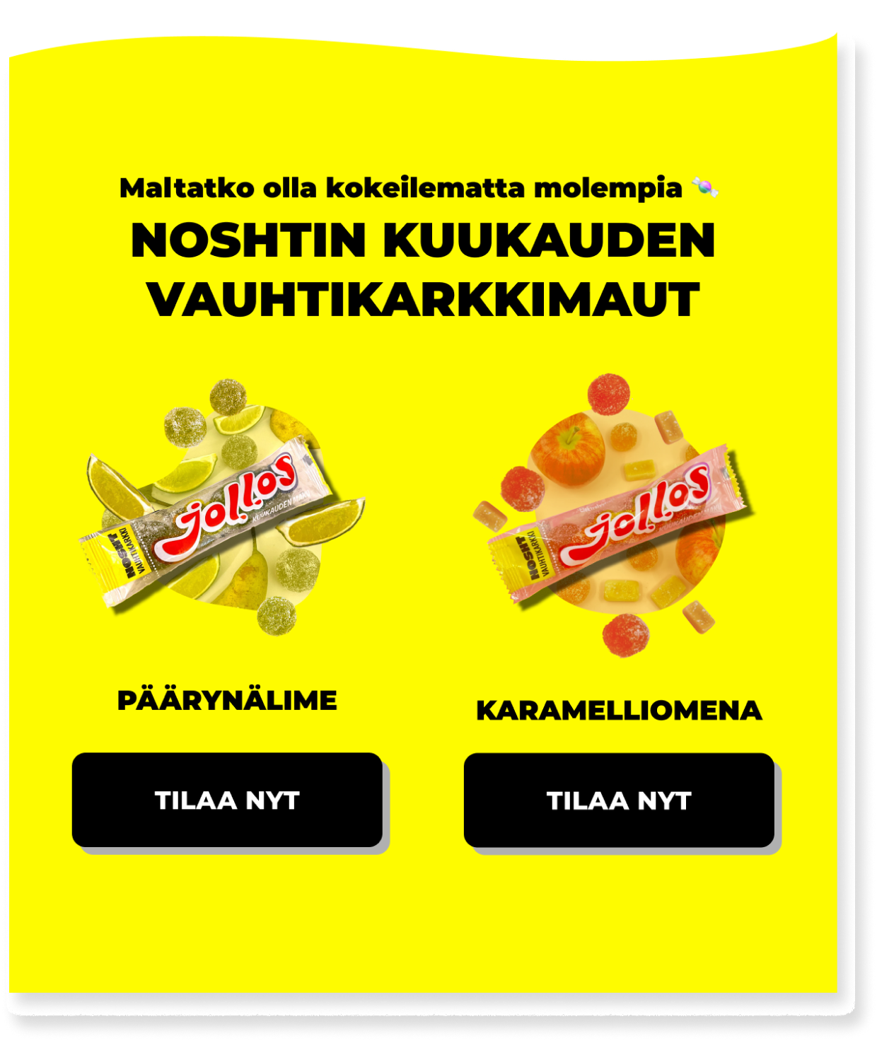 Nosth is a sports drink and protein product company that creates gut-friendly products in Finland. One of their products, energy candy Jollos, not only has many flavours all year round, but they also sell monthly special flavours.